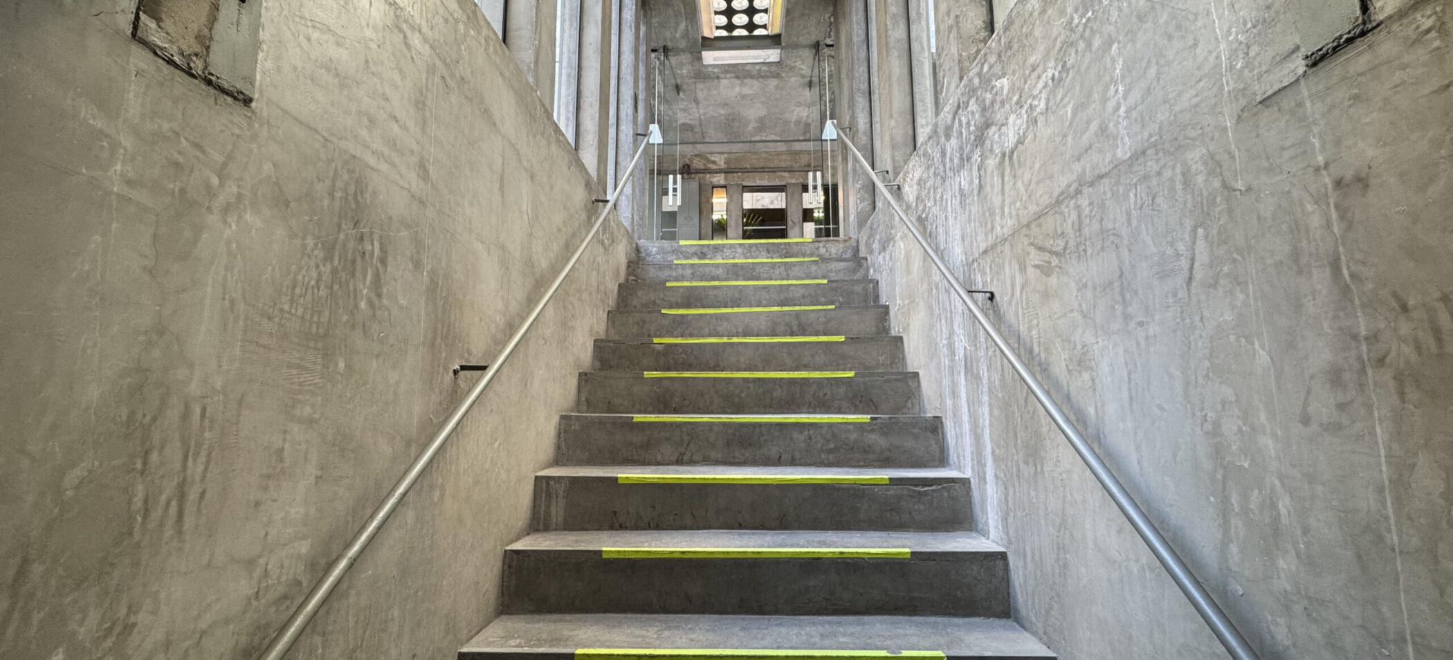 - Estética neta de hormigón armado y techo de vidrio que permite el ingreso de luz natural